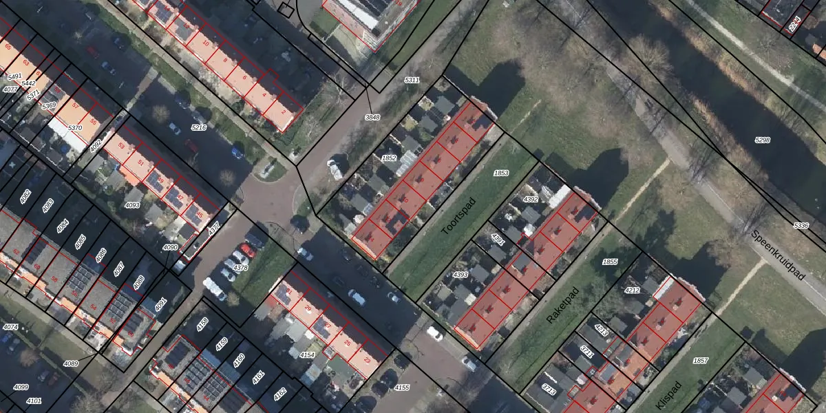 Het perceel waarop Toortspad 10 staat heeft een oppervlakte van 964 m². Dit is een groot perceel. De perceeloppervlakte wordt geregistreerd door het Kadaster. Gedetailleerde informatie over de maten van dit perceel kunt u vinden in het rapport Kadastrale kaart met maatvoering van Toortspad 10.
