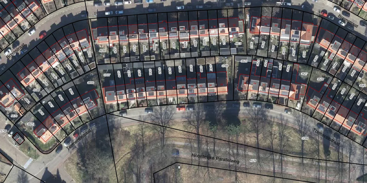 Tormentilstraat 36 is gelegen op kadastraal perceel AHM01P3784. Deze kadastrale aanduiding is uniek en wordt gebruikt door het Kadaster om eigendomsrechten en andere zakelijke rechten vast te leggen. Het perceel maakt onderdeel uit van de kadastrale gemeente Arnhem.