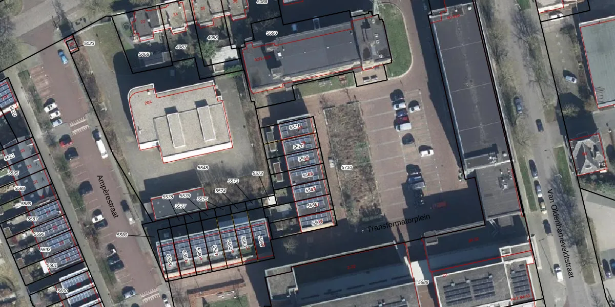 Het perceel waarop Transformatorplein 23 staat heeft een oppervlakte van 91 m². Dit is een klein perceel. De perceeloppervlakte wordt geregistreerd door het Kadaster. Gedetailleerde informatie over de maten van dit perceel kunt u vinden in het rapport Kadastrale kaart met maatvoering van Transformatorplein 23.