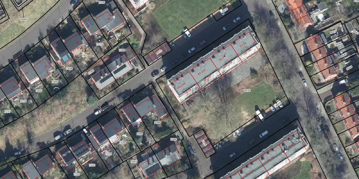 Het perceel waarop Treublaan 15-3 staat heeft een oppervlakte van 2783 m². Dit is een zeer groot perceel. De perceeloppervlakte wordt geregistreerd door het Kadaster. Gedetailleerde informatie over de maten van dit perceel kunt u vinden in het rapport Kadastrale kaart met maatvoering van Treublaan 15-3.