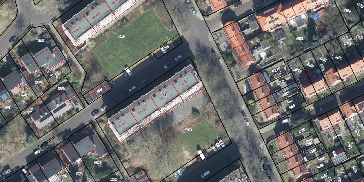 Treublaan 3-4 is gelegen op kadastraal perceel AHM01C8976. Deze kadastrale aanduiding is uniek en wordt gebruikt door het Kadaster om eigendomsrechten en andere zakelijke rechten vast te leggen. Het perceel maakt onderdeel uit van de kadastrale gemeente Arnhem.
