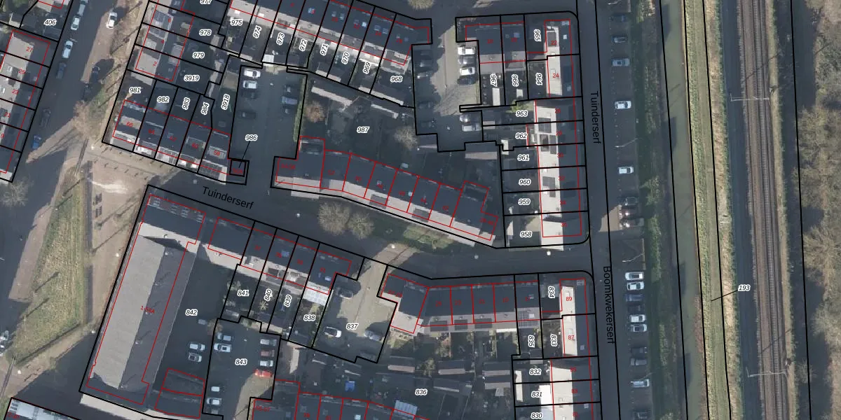Het perceel waarop Tuinderserf 44 staat heeft een oppervlakte van 1247 m². Dit is een zeer groot perceel. De perceeloppervlakte wordt geregistreerd door het Kadaster. Gedetailleerde informatie over de maten van dit perceel kunt u vinden in het rapport Kadastrale kaart met maatvoering van Tuinderserf 44.