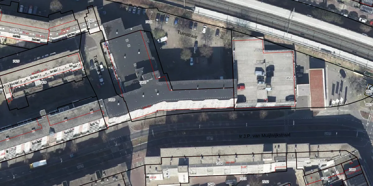 Het perceel waarop Tuinstraat 150 staat heeft een oppervlakte van 1670 m². Dit is een zeer groot perceel. De perceeloppervlakte wordt geregistreerd door het Kadaster. Gedetailleerde informatie over de maten van dit perceel kunt u vinden in het rapport Kadastrale kaart met maatvoering van Tuinstraat 150.