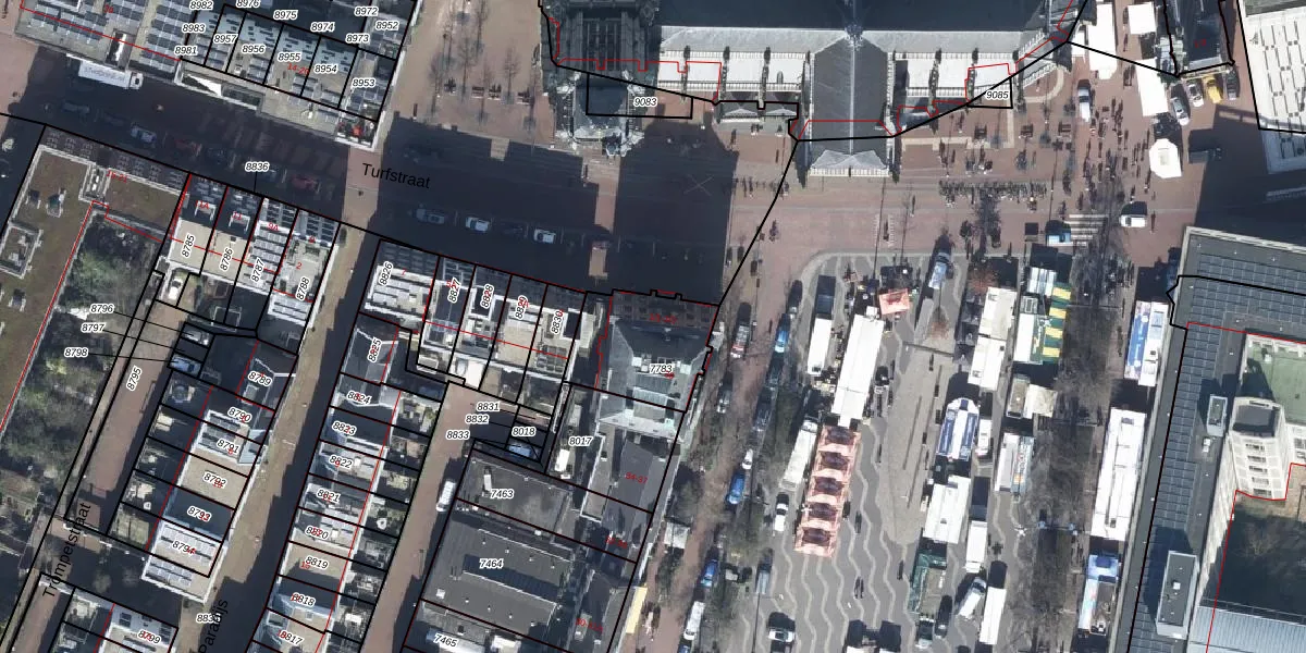 Het perceel waarop Turfstraat 1-2 staat heeft een oppervlakte van 320 m². Dit is een groot perceel. De perceeloppervlakte wordt geregistreerd door het Kadaster. Gedetailleerde informatie over de maten van dit perceel kunt u vinden in het rapport Kadastrale kaart met maatvoering van Turfstraat 1-2.