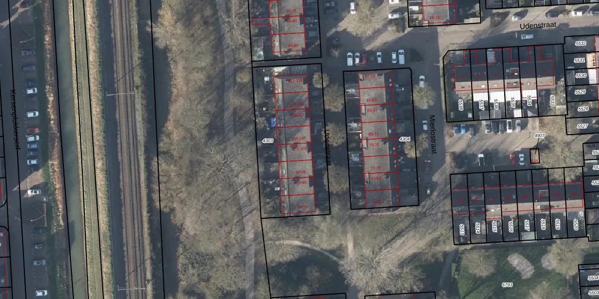 Het perceel waarop Udenstraat 101 staat heeft een oppervlakte van 1171 m². Dit is een zeer groot perceel. De perceeloppervlakte wordt geregistreerd door het Kadaster. Gedetailleerde informatie over de maten van dit perceel kunt u vinden in het rapport Kadastrale kaart met maatvoering van Udenstraat 101.