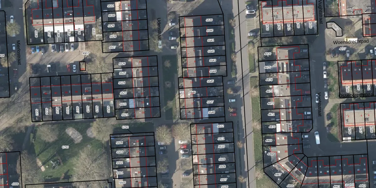 Het perceel waarop Udenstraat 15 staat heeft een oppervlakte van 127 m². Dit is een middelgroot perceel. De perceeloppervlakte wordt geregistreerd door het Kadaster. Gedetailleerde informatie over de maten van dit perceel kunt u vinden in het rapport Kadastrale kaart met maatvoering van Udenstraat 15.