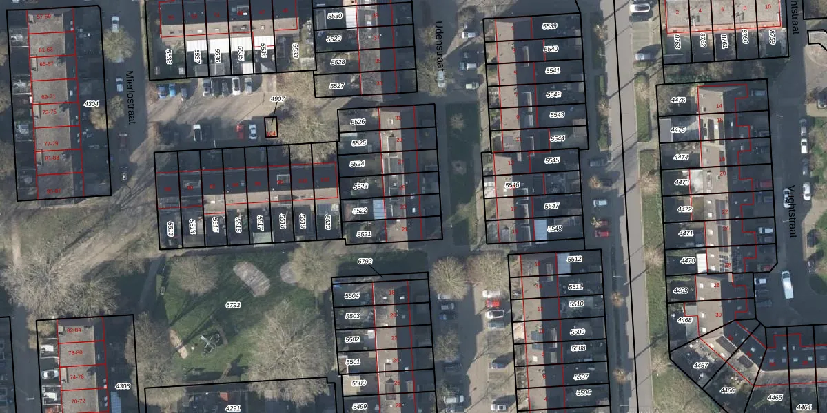 Udenstraat 23 is gelegen op kadastraal perceel AHM03AC5522. Deze kadastrale aanduiding is uniek en wordt gebruikt door het Kadaster om eigendomsrechten en andere zakelijke rechten vast te leggen. Het perceel maakt onderdeel uit van de kadastrale gemeente Arnhem.
