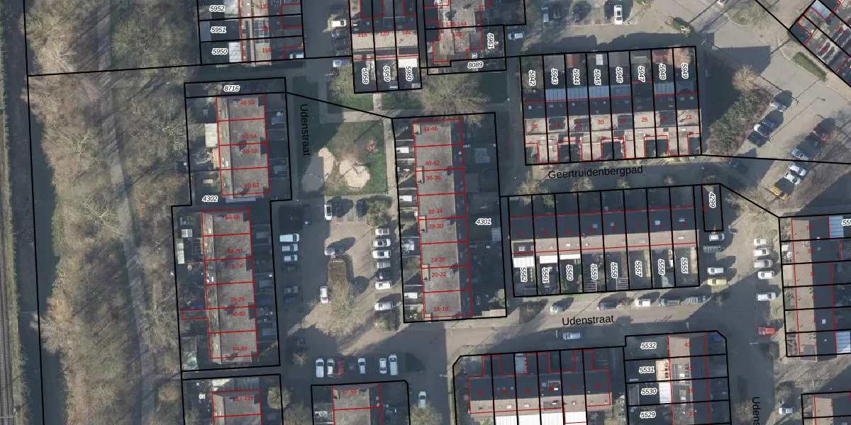 Het perceel waarop Udenstraat 32 staat heeft een oppervlakte van 1165 m². Dit is een zeer groot perceel. De perceeloppervlakte wordt geregistreerd door het Kadaster. Gedetailleerde informatie over de maten van dit perceel kunt u vinden in het rapport Kadastrale kaart met maatvoering van Udenstraat 32.