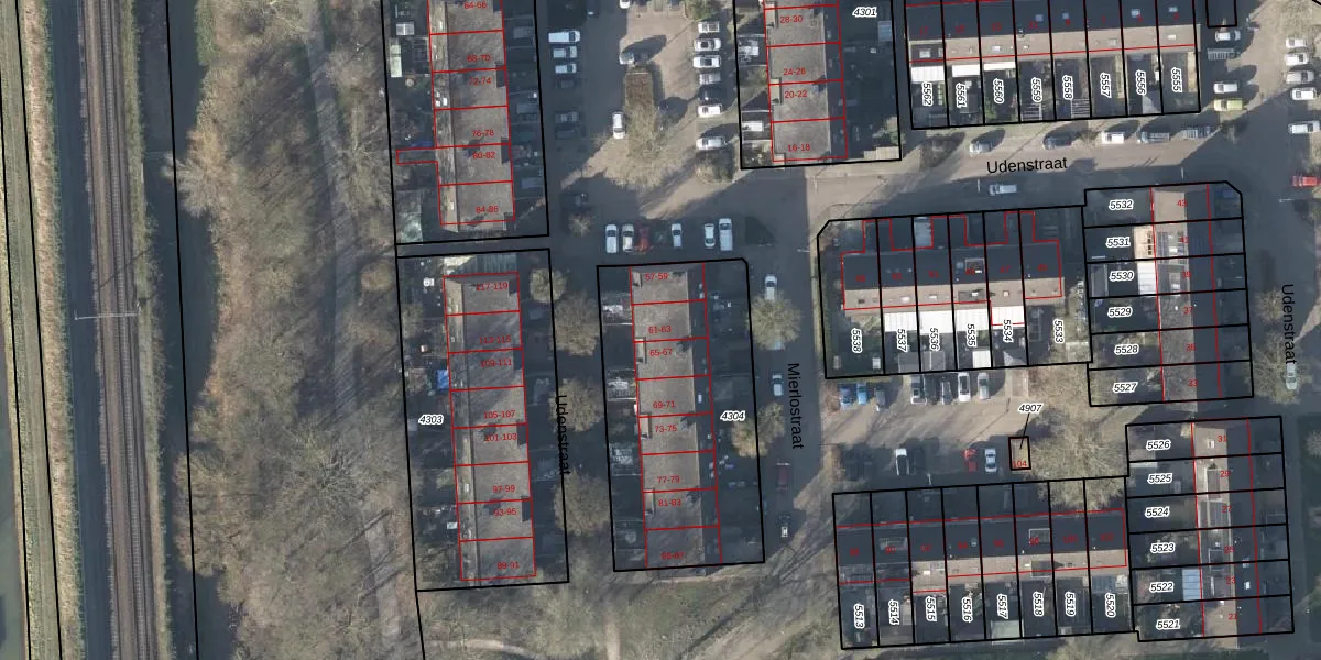 Het perceel waarop Udenstraat 61 staat heeft een oppervlakte van 1047 m². Dit is een zeer groot perceel. De perceeloppervlakte wordt geregistreerd door het Kadaster. Gedetailleerde informatie over de maten van dit perceel kunt u vinden in het rapport Kadastrale kaart met maatvoering van Udenstraat 61.