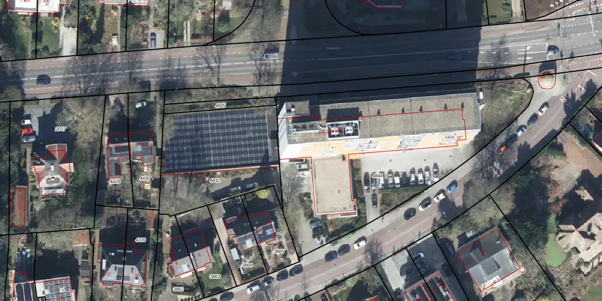 Het perceel waarop Utrechtseweg 145-47 staat heeft een oppervlakte van 2960 m². Dit is een zeer groot perceel. De perceeloppervlakte wordt geregistreerd door het Kadaster. Gedetailleerde informatie over de maten van dit perceel kunt u vinden in het rapport Kadastrale kaart met maatvoering van Utrechtseweg 145-47.