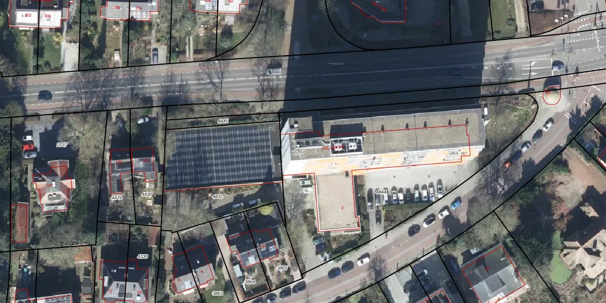 Het perceel waarop Utrechtseweg 145-26 staat heeft een oppervlakte van 2960 m². Dit is een zeer groot perceel. De perceeloppervlakte wordt geregistreerd door het Kadaster. Gedetailleerde informatie over de maten van dit perceel kunt u vinden in het rapport Kadastrale kaart met maatvoering van Utrechtseweg 145-26.