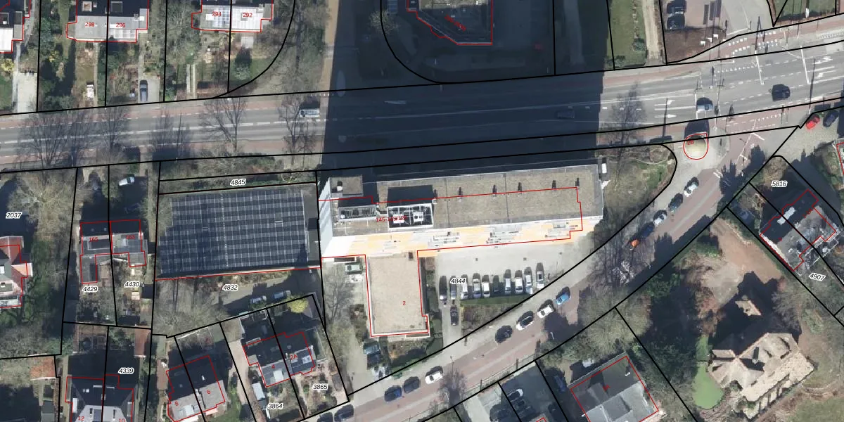 Het perceel waarop Utrechtseweg 145-54 staat heeft een oppervlakte van 2960 m². Dit is een zeer groot perceel. De perceeloppervlakte wordt geregistreerd door het Kadaster. Gedetailleerde informatie over de maten van dit perceel kunt u vinden in het rapport Kadastrale kaart met maatvoering van Utrechtseweg 145-54.