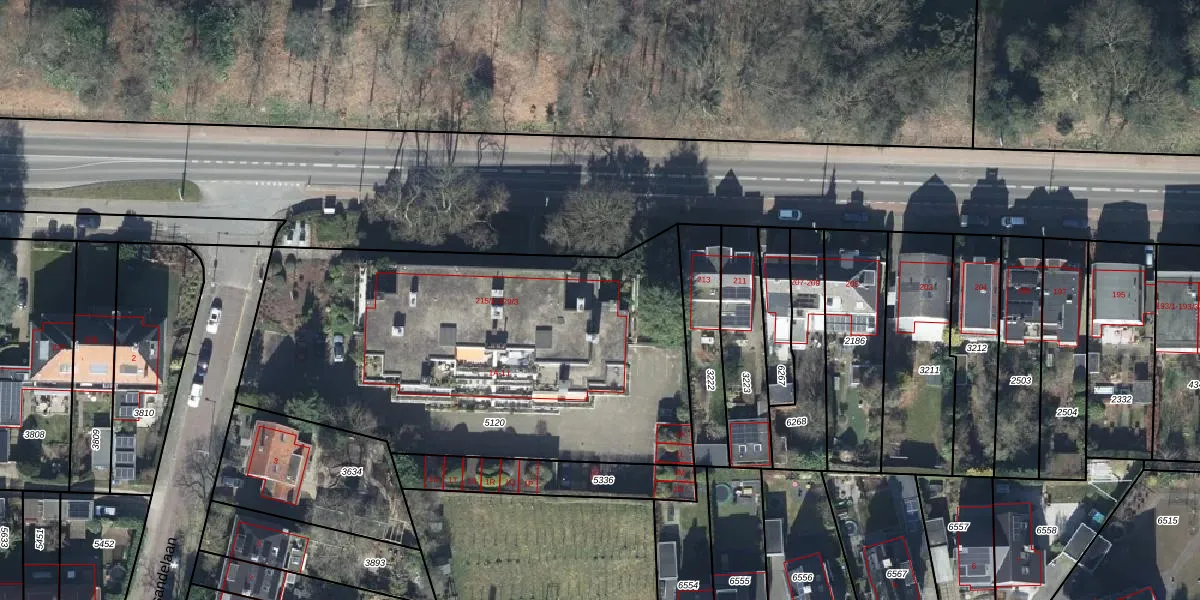 Het perceel waarop Utrechtseweg 215-2 staat heeft een oppervlakte van 2339 m². Dit is een zeer groot perceel. De perceeloppervlakte wordt geregistreerd door het Kadaster. Gedetailleerde informatie over de maten van dit perceel kunt u vinden in het rapport Kadastrale kaart met maatvoering van Utrechtseweg 215-2.