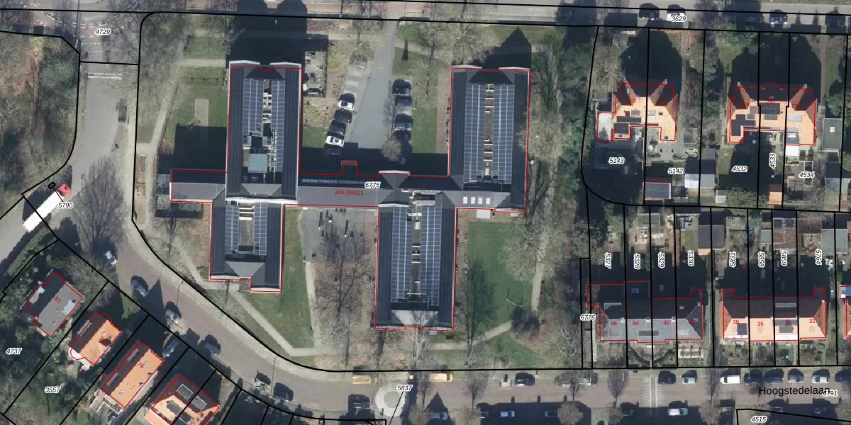 Het perceel waarop Utrechtseweg 265-20 staat heeft een oppervlakte van 8205 m². Dit is een zeer groot perceel. De perceeloppervlakte wordt geregistreerd door het Kadaster. Gedetailleerde informatie over de maten van dit perceel kunt u vinden in het rapport Kadastrale kaart met maatvoering van Utrechtseweg 265-20.