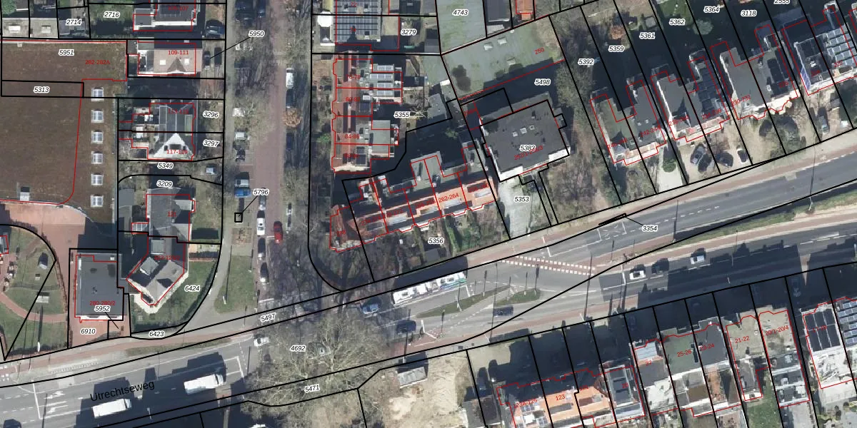 Het perceel waarop Utrechtseweg 266 staat heeft een oppervlakte van 920 m². Dit is een groot perceel. De perceeloppervlakte wordt geregistreerd door het Kadaster. Gedetailleerde informatie over de maten van dit perceel kunt u vinden in het rapport Kadastrale kaart met maatvoering van Utrechtseweg 266.
