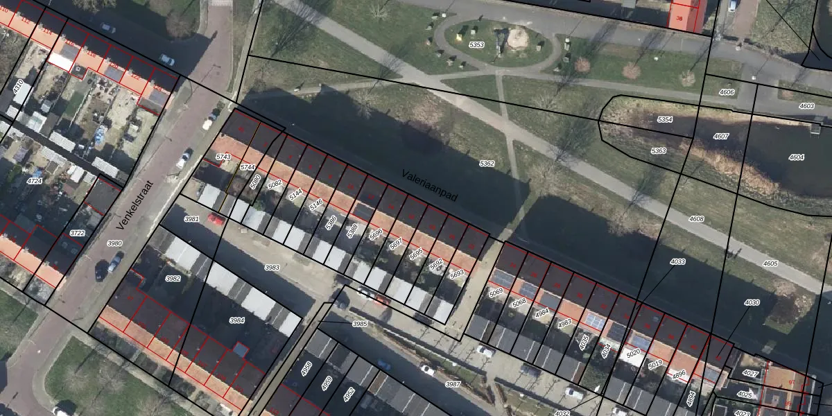 Valeriaanpad 16 is gelegen op kadastraal perceel AHM01E5697. Deze kadastrale aanduiding is uniek en wordt gebruikt door het Kadaster om eigendomsrechten en andere zakelijke rechten vast te leggen. Het perceel maakt onderdeel uit van de kadastrale gemeente Arnhem.