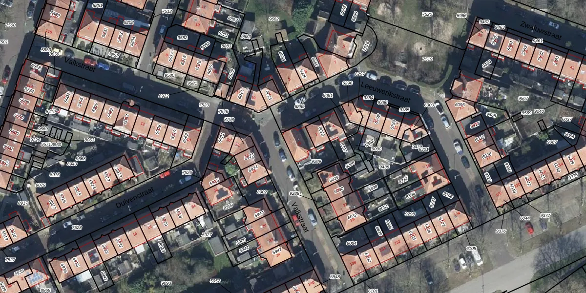Het perceel waarop Valkstraat 21 staat heeft een oppervlakte van 195 m². Dit is een middelgroot perceel. De perceeloppervlakte wordt geregistreerd door het Kadaster. Gedetailleerde informatie over de maten van dit perceel kunt u vinden in het rapport Kadastrale kaart met maatvoering van Valkstraat 21.