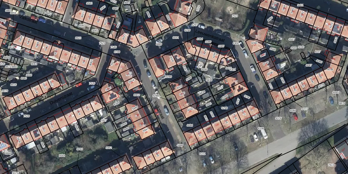 Het perceel waarop Valkstraat 23 staat heeft een oppervlakte van 48 m². Dit is een klein perceel. De perceeloppervlakte wordt geregistreerd door het Kadaster. Gedetailleerde informatie over de maten van dit perceel kunt u vinden in het rapport Kadastrale kaart met maatvoering van Valkstraat 23.