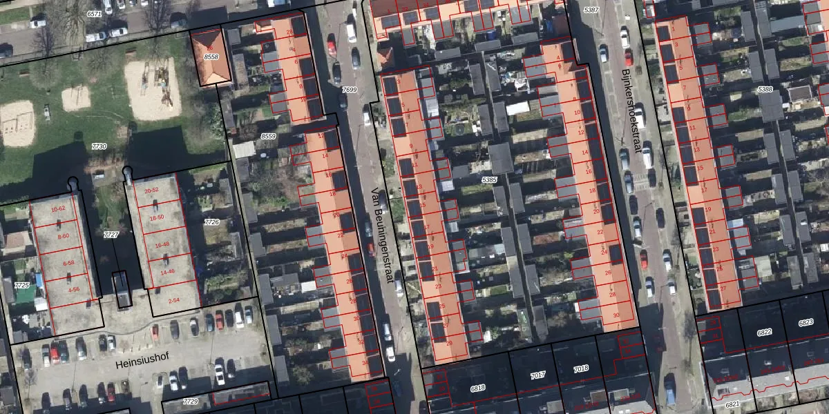Het perceel waarop Van Beuningenstraat 15 staat heeft een oppervlakte van 4690 m². Dit is een zeer groot perceel. De perceeloppervlakte wordt geregistreerd door het Kadaster. Gedetailleerde informatie over de maten van dit perceel kunt u vinden in het rapport Kadastrale kaart met maatvoering van Van Beuningenstraat 15.