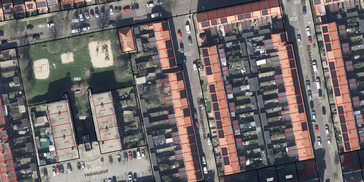 Het perceel waarop Van Beuningenstraat 16 staat heeft een oppervlakte van 2297 m². Dit is een zeer groot perceel. De perceeloppervlakte wordt geregistreerd door het Kadaster. Gedetailleerde informatie over de maten van dit perceel kunt u vinden in het rapport Kadastrale kaart met maatvoering van Van Beuningenstraat 16.