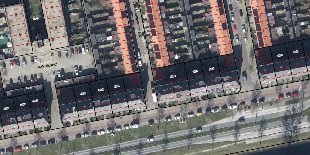 Het perceel waarop Van Beuningenstraat 33 staat heeft een oppervlakte van 561 m². Dit is een groot perceel. De perceeloppervlakte wordt geregistreerd door het Kadaster. Gedetailleerde informatie over de maten van dit perceel kunt u vinden in het rapport Kadastrale kaart met maatvoering van Van Beuningenstraat 33.