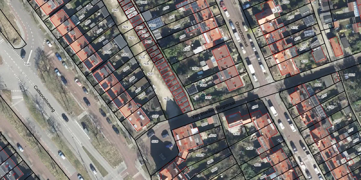 Het perceel waarop Van Blankenburgstraat 1-E staat heeft een oppervlakte van 565 m². Dit is een groot perceel. De perceeloppervlakte wordt geregistreerd door het Kadaster. Gedetailleerde informatie over de maten van dit perceel kunt u vinden in het rapport Kadastrale kaart met maatvoering van Van Blankenburgstraat 1-E.