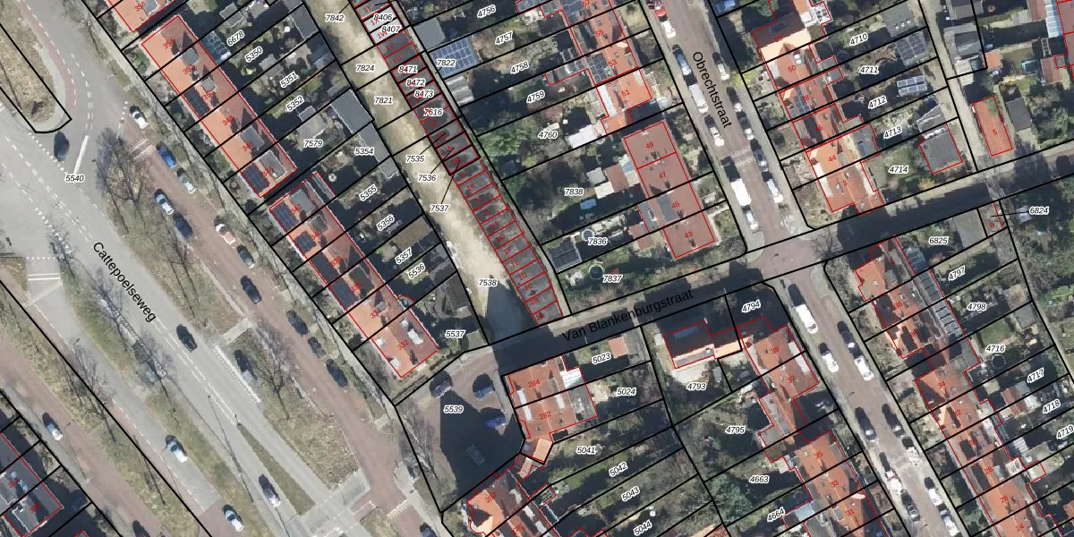 Het perceel waarop Van Blankenburgstraat 1-D staat heeft een oppervlakte van 565 m². Dit is een groot perceel. De perceeloppervlakte wordt geregistreerd door het Kadaster. Gedetailleerde informatie over de maten van dit perceel kunt u vinden in het rapport Kadastrale kaart met maatvoering van Van Blankenburgstraat 1-D.