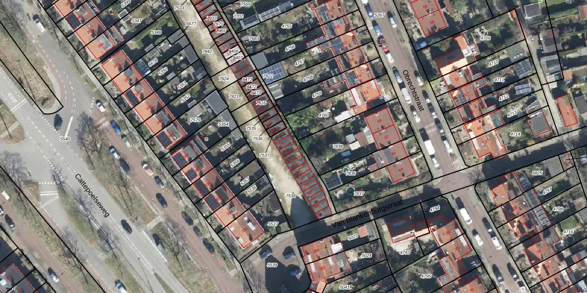 Het perceel waarop Van Blankenburgstraat 1-J staat heeft een oppervlakte van 565 m². Dit is een groot perceel. De perceeloppervlakte wordt geregistreerd door het Kadaster. Gedetailleerde informatie over de maten van dit perceel kunt u vinden in het rapport Kadastrale kaart met maatvoering van Van Blankenburgstraat 1-J.