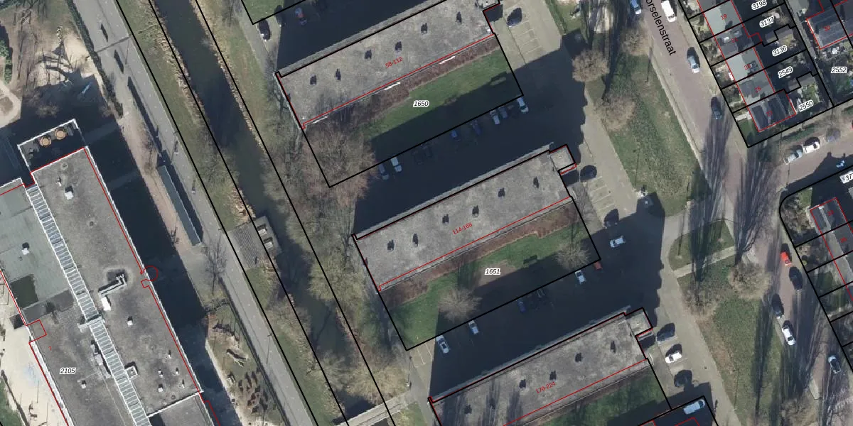 Het perceel waarop Van Borselenstraat 114-I staat heeft een oppervlakte van 1440 m². Dit is een zeer groot perceel. De perceeloppervlakte wordt geregistreerd door het Kadaster. Gedetailleerde informatie over de maten van dit perceel kunt u vinden in het rapport Kadastrale kaart met maatvoering van Van Borselenstraat 114-I.