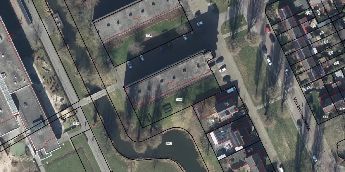 Het perceel waarop Van Borselenstraat 188 staat heeft een oppervlakte van 1305 m². Dit is een zeer groot perceel. De perceeloppervlakte wordt geregistreerd door het Kadaster. Gedetailleerde informatie over de maten van dit perceel kunt u vinden in het rapport Kadastrale kaart met maatvoering van Van Borselenstraat 188.
