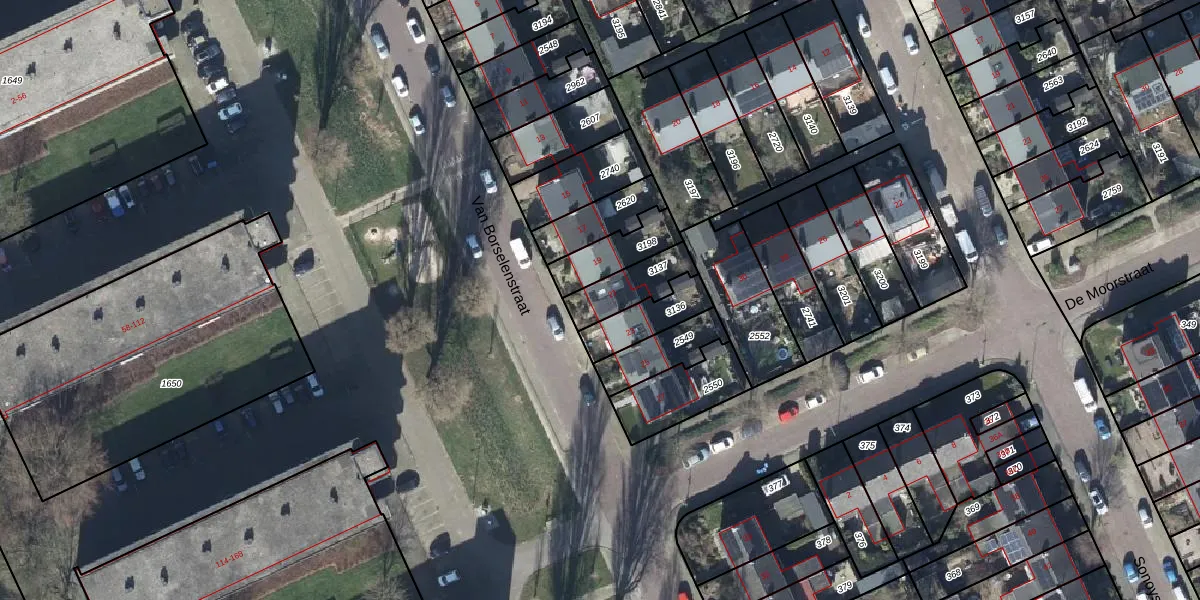 Gebruik de zoekbalk of klik op een perceel voor informatie over de adressen binnen dit perceel.