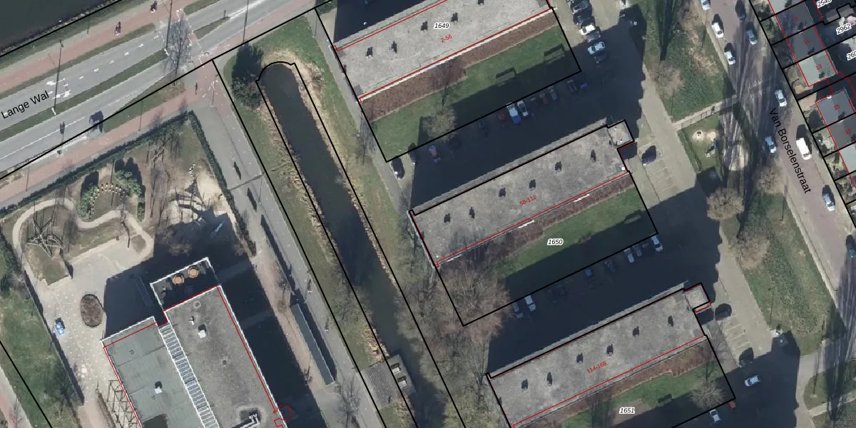 Het perceel waarop Van Borselenstraat 58-M staat heeft een oppervlakte van 1430 m². Dit is een zeer groot perceel. De perceeloppervlakte wordt geregistreerd door het Kadaster. Gedetailleerde informatie over de maten van dit perceel kunt u vinden in het rapport Kadastrale kaart met maatvoering van Van Borselenstraat 58-M.