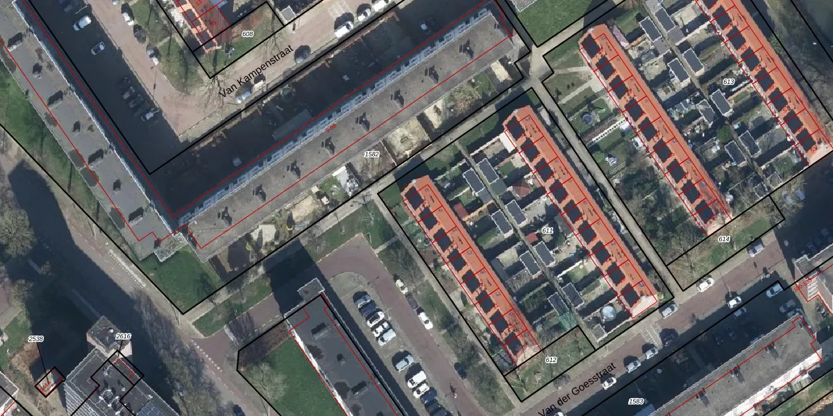Het perceel waarop Van der Goesstraat 1 staat heeft een oppervlakte van 2544 m². Dit is een zeer groot perceel. De perceeloppervlakte wordt geregistreerd door het Kadaster. Gedetailleerde informatie over de maten van dit perceel kunt u vinden in het rapport Kadastrale kaart met maatvoering van Van der Goesstraat 1.