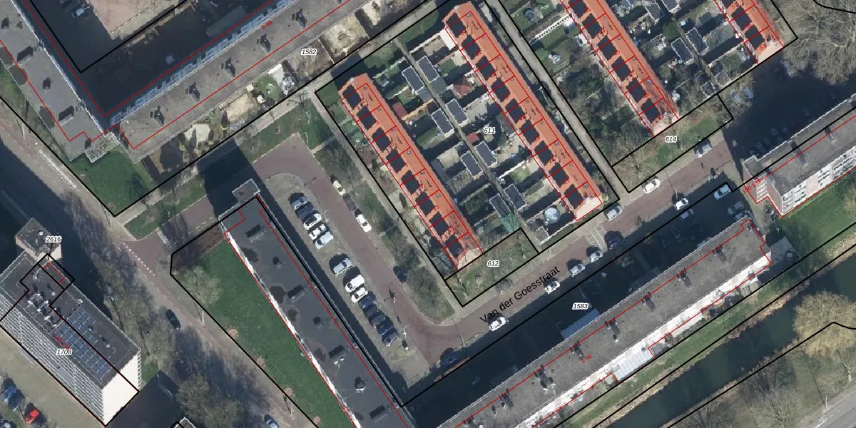 Het perceel waarop Van der Goesstraat 11 staat heeft een oppervlakte van 2544 m². Dit is een zeer groot perceel. De perceeloppervlakte wordt geregistreerd door het Kadaster. Gedetailleerde informatie over de maten van dit perceel kunt u vinden in het rapport Kadastrale kaart met maatvoering van Van der Goesstraat 11.