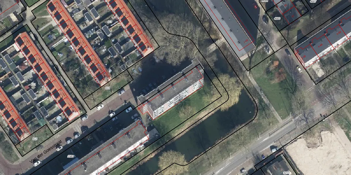 Het perceel waarop Van der Goesstraat 118 staat heeft een oppervlakte van 4920 m². Dit is een zeer groot perceel. De perceeloppervlakte wordt geregistreerd door het Kadaster. Gedetailleerde informatie over de maten van dit perceel kunt u vinden in het rapport Kadastrale kaart met maatvoering van Van der Goesstraat 118.