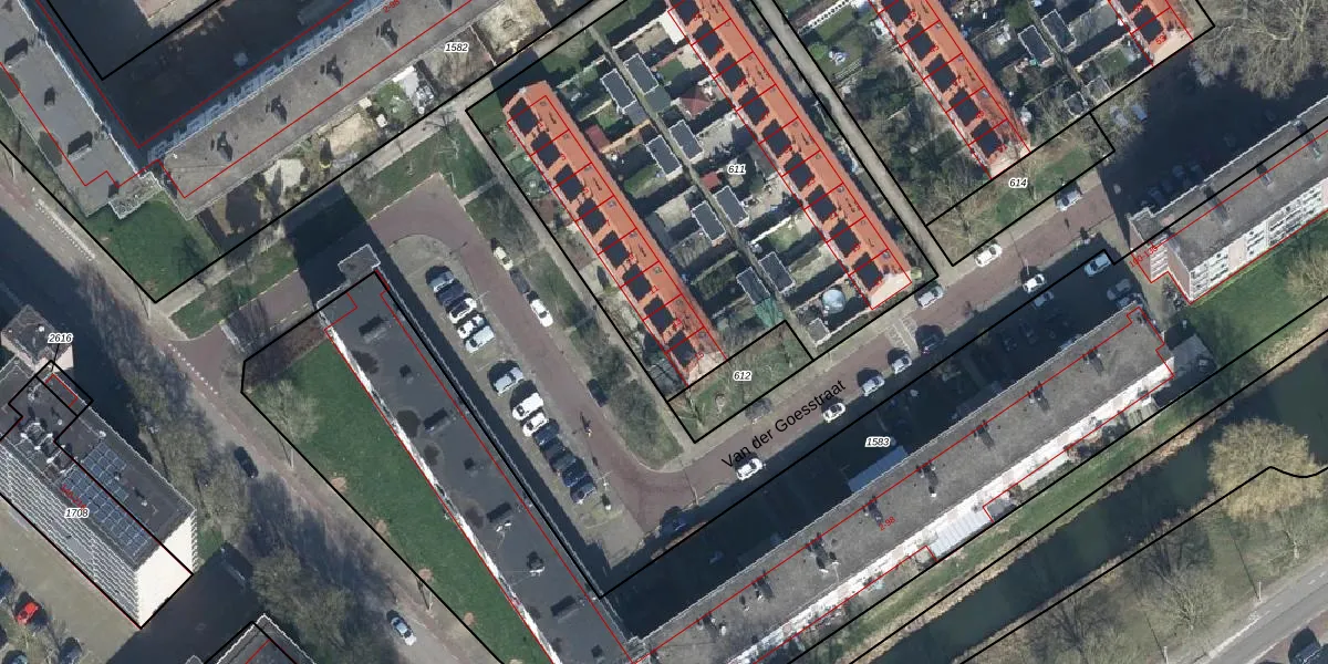 Het perceel waarop Van der Goesstraat 13 staat heeft een oppervlakte van 2544 m². Dit is een zeer groot perceel. De perceeloppervlakte wordt geregistreerd door het Kadaster. Gedetailleerde informatie over de maten van dit perceel kunt u vinden in het rapport Kadastrale kaart met maatvoering van Van der Goesstraat 13.