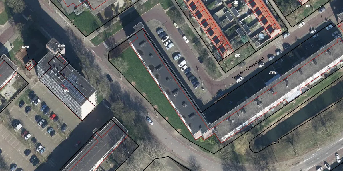Het perceel waarop Van der Goesstraat 14 staat heeft een oppervlakte van 4920 m². Dit is een zeer groot perceel. De perceeloppervlakte wordt geregistreerd door het Kadaster. Gedetailleerde informatie over de maten van dit perceel kunt u vinden in het rapport Kadastrale kaart met maatvoering van Van der Goesstraat 14.