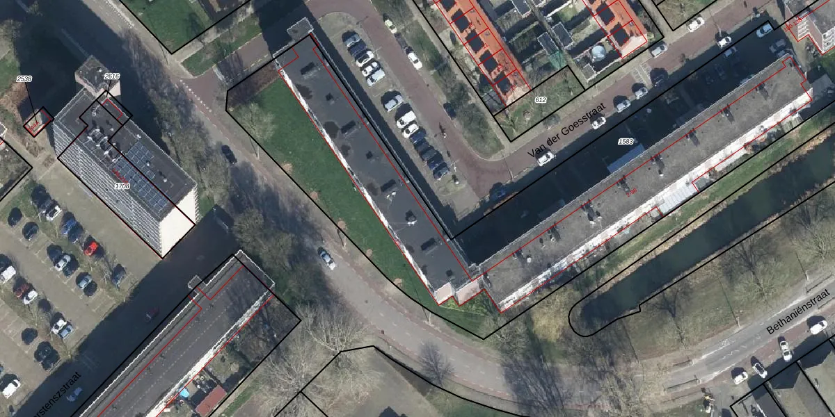 Het perceel waarop Van der Goesstraat 2-D staat heeft een oppervlakte van 4920 m². Dit is een zeer groot perceel. De perceeloppervlakte wordt geregistreerd door het Kadaster. Gedetailleerde informatie over de maten van dit perceel kunt u vinden in het rapport Kadastrale kaart met maatvoering van Van der Goesstraat 2-D.