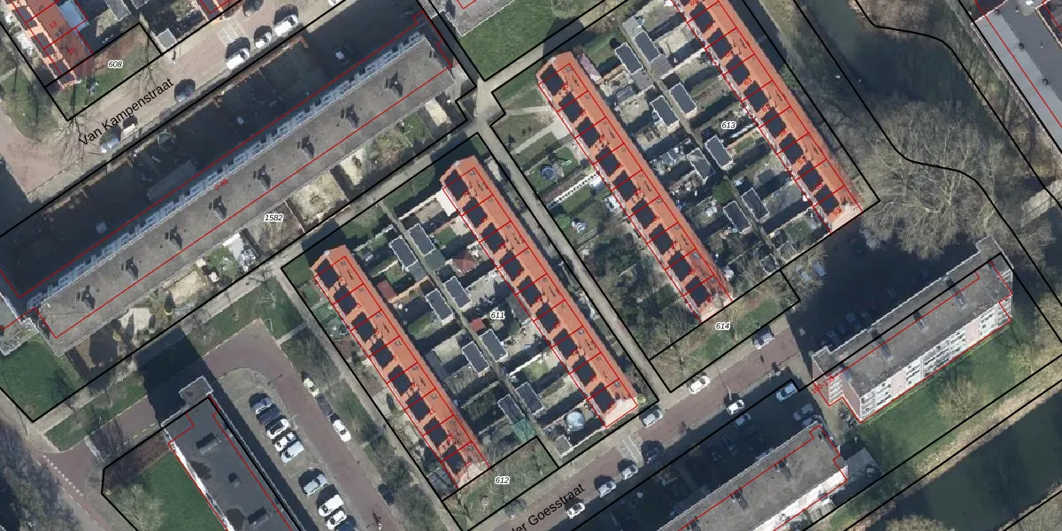 Het perceel waarop Van der Goesstraat 27 staat heeft een oppervlakte van 2544 m². Dit is een zeer groot perceel. De perceeloppervlakte wordt geregistreerd door het Kadaster. Gedetailleerde informatie over de maten van dit perceel kunt u vinden in het rapport Kadastrale kaart met maatvoering van Van der Goesstraat 27.