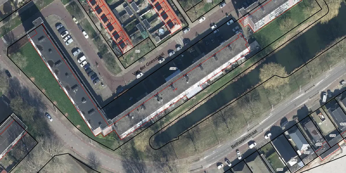Het perceel waarop Van der Goesstraat 92 staat heeft een oppervlakte van 4920 m². Dit is een zeer groot perceel. De perceeloppervlakte wordt geregistreerd door het Kadaster. Gedetailleerde informatie over de maten van dit perceel kunt u vinden in het rapport Kadastrale kaart met maatvoering van Van der Goesstraat 92.