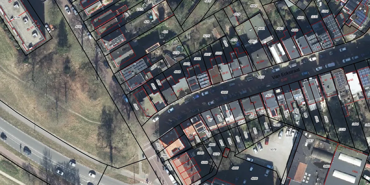 Het perceel waarop Van Eckstraat 15 staat heeft een oppervlakte van 167 m². Dit is een middelgroot perceel. De perceeloppervlakte wordt geregistreerd door het Kadaster. Gedetailleerde informatie over de maten van dit perceel kunt u vinden in het rapport Kadastrale kaart met maatvoering van Van Eckstraat 15.