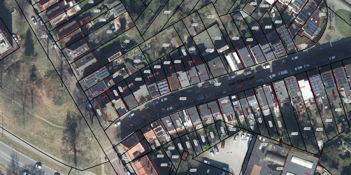 Het perceel waarop Van Eckstraat 25 staat heeft een oppervlakte van 130 m². Dit is een middelgroot perceel. De perceeloppervlakte wordt geregistreerd door het Kadaster. Gedetailleerde informatie over de maten van dit perceel kunt u vinden in het rapport Kadastrale kaart met maatvoering van Van Eckstraat 25.