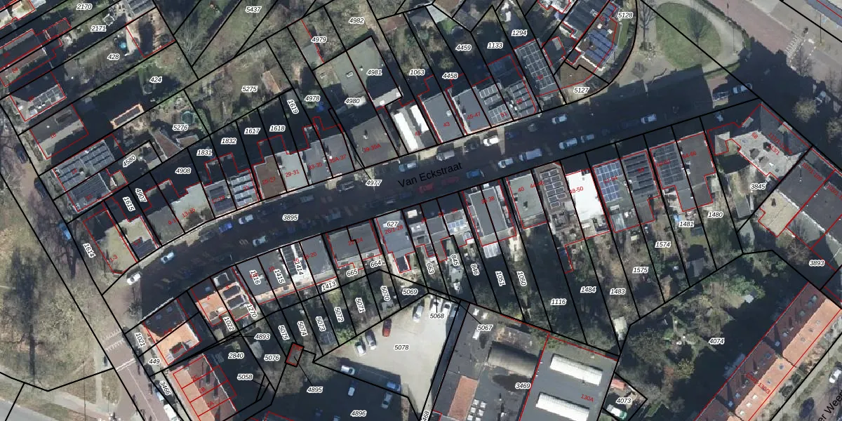 Gebruik de zoekbalk of klik op een perceel voor informatie over de adressen binnen dit perceel.