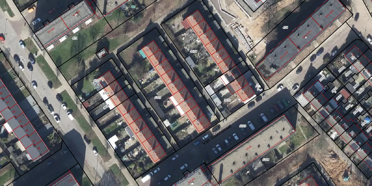 Het perceel waarop Van Galenstraat 25 staat heeft een oppervlakte van 1569 m². Dit is een zeer groot perceel. De perceeloppervlakte wordt geregistreerd door het Kadaster. Gedetailleerde informatie over de maten van dit perceel kunt u vinden in het rapport Kadastrale kaart met maatvoering van Van Galenstraat 25.