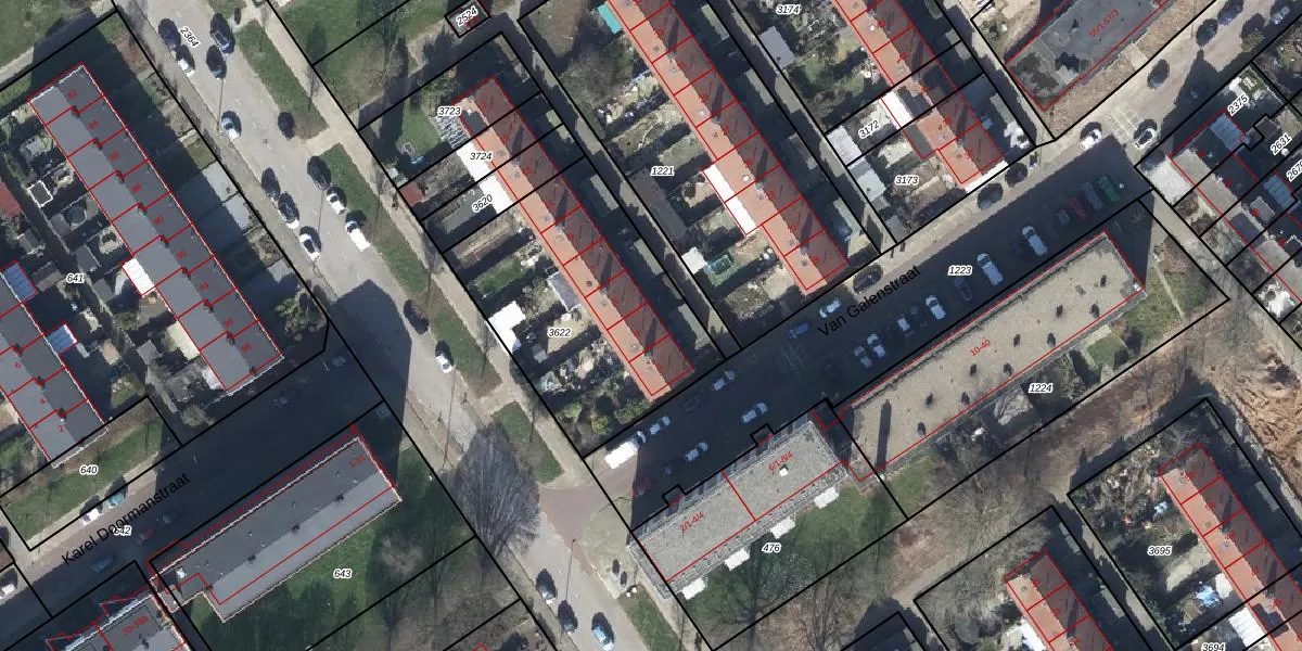 Het perceel waarop Van Galenstraat 3 staat heeft een oppervlakte van 1035 m². Dit is een zeer groot perceel. De perceeloppervlakte wordt geregistreerd door het Kadaster. Gedetailleerde informatie over de maten van dit perceel kunt u vinden in het rapport Kadastrale kaart met maatvoering van Van Galenstraat 3.