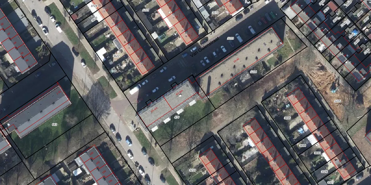 Het perceel waarop Van Galenstraat 8-4 staat heeft een oppervlakte van 817 m². Dit is een groot perceel. De perceeloppervlakte wordt geregistreerd door het Kadaster. Gedetailleerde informatie over de maten van dit perceel kunt u vinden in het rapport Kadastrale kaart met maatvoering van Van Galenstraat 8-4.