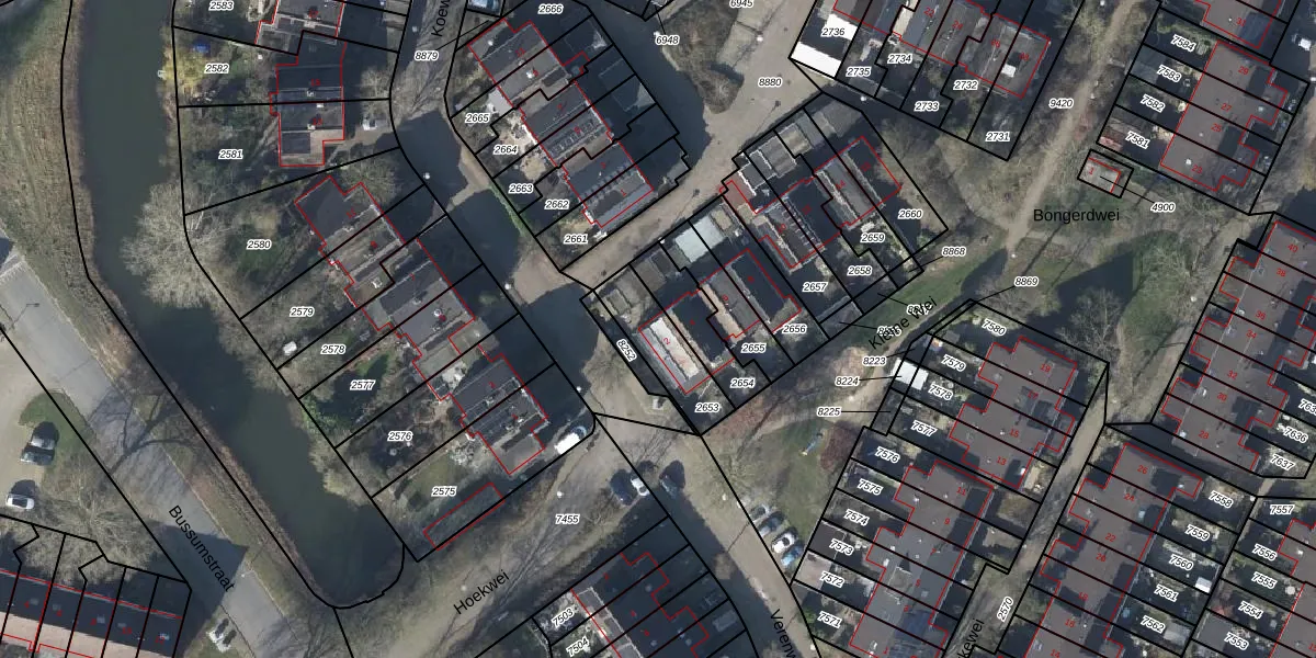 Gebruik de zoekbalk of klik op een perceel voor informatie over de adressen binnen dit perceel.