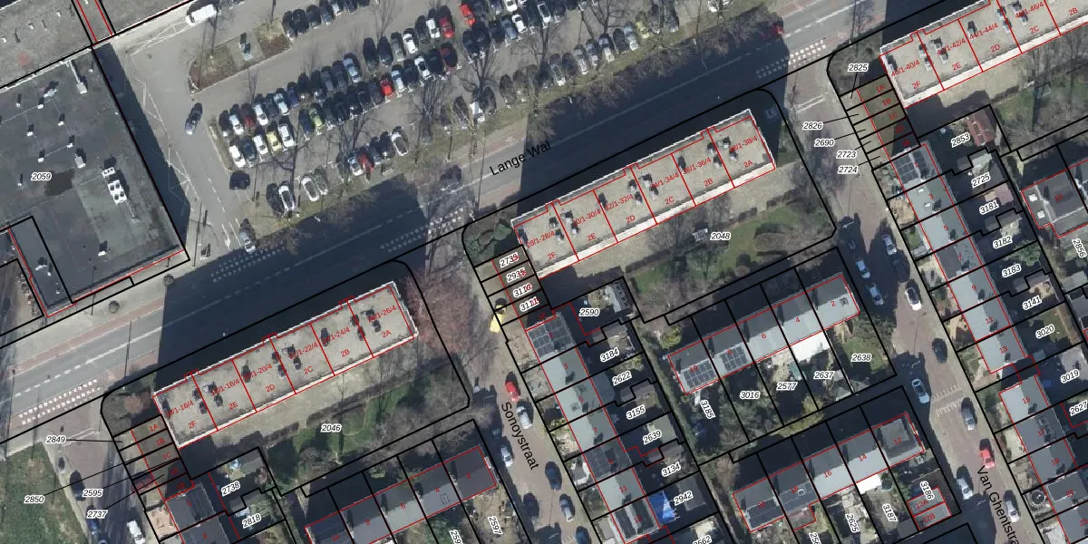 Het perceel waarop Van Ghentstraat 2-F staat heeft een oppervlakte van 1596 m². Dit is een zeer groot perceel. De perceeloppervlakte wordt geregistreerd door het Kadaster. Gedetailleerde informatie over de maten van dit perceel kunt u vinden in het rapport Kadastrale kaart met maatvoering van Van Ghentstraat 2-F.