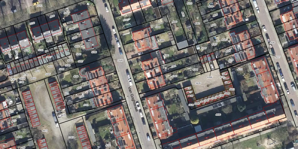 Het perceel waarop Van Goghstraat 64 staat heeft een oppervlakte van 293 m². Dit is een middelgroot perceel. De perceeloppervlakte wordt geregistreerd door het Kadaster. Gedetailleerde informatie over de maten van dit perceel kunt u vinden in het rapport Kadastrale kaart met maatvoering van Van Goghstraat 64.