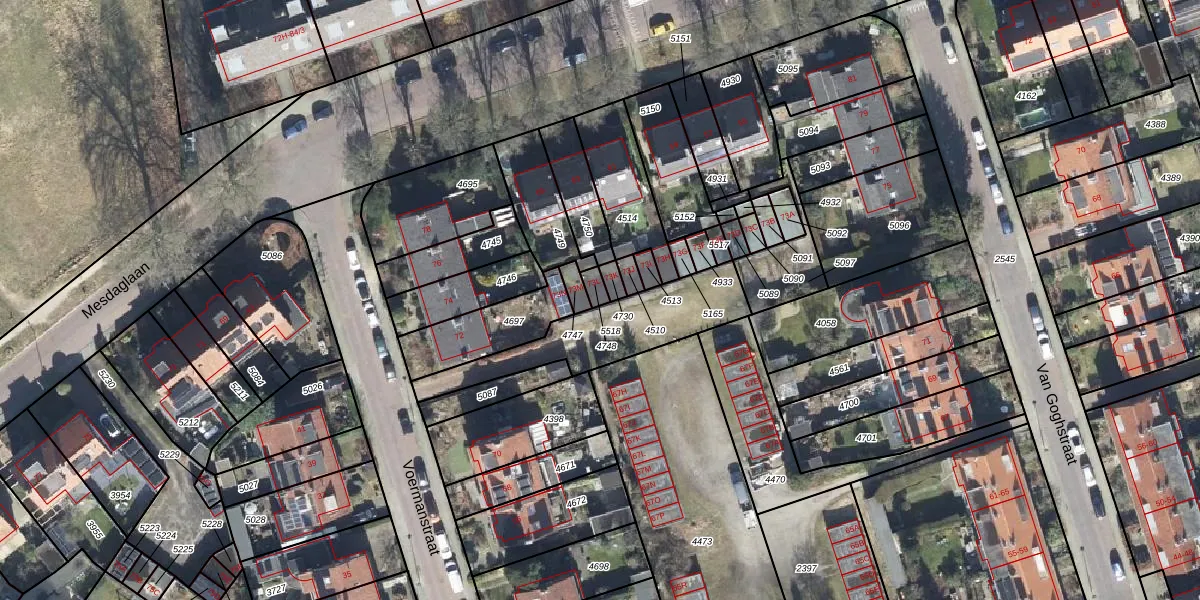 Gebruik de zoekbalk of klik op een perceel voor informatie over de adressen binnen dit perceel.